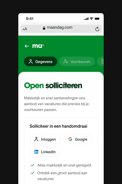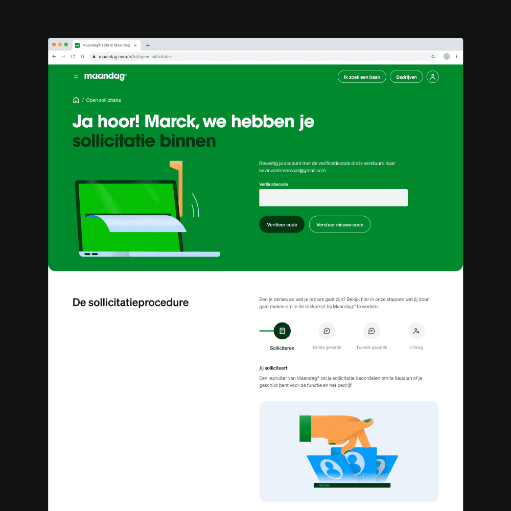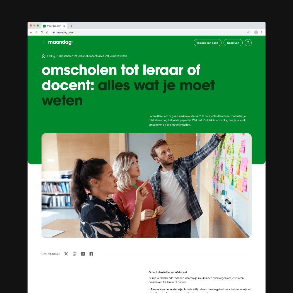 F.e. During testing, we noticed that users on the Maandag® Professional page clicked the “I’m looking for a job” button to proceed, only to be redirected to the same page. This highlighted the need for clearer active states or button labeling to indicate when users are already on the current page and prevent unnecessary confusion.