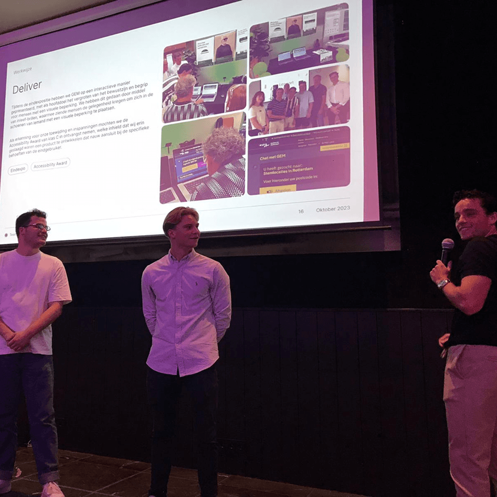 The project concluded with the team receiving the Accessibility Award from the client. We were also invited to present our insights and designs to representatives from 20 municipalities during a recurring GEM stakeholder meeting in Utrecht.